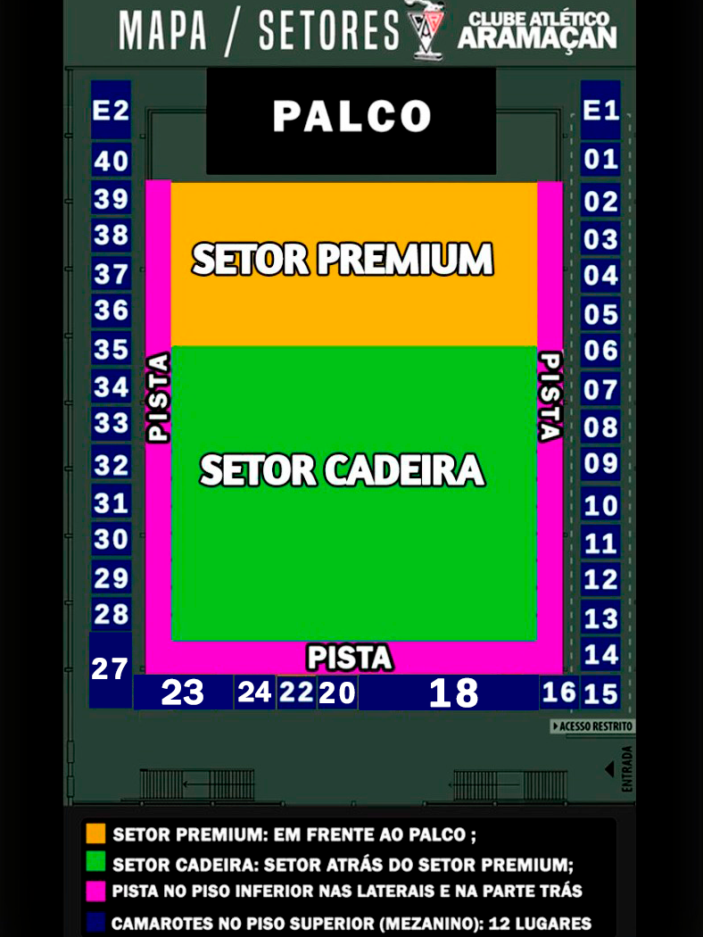 ✅ Premium– Setor feito de cadeiras, mais próximo ao palco;