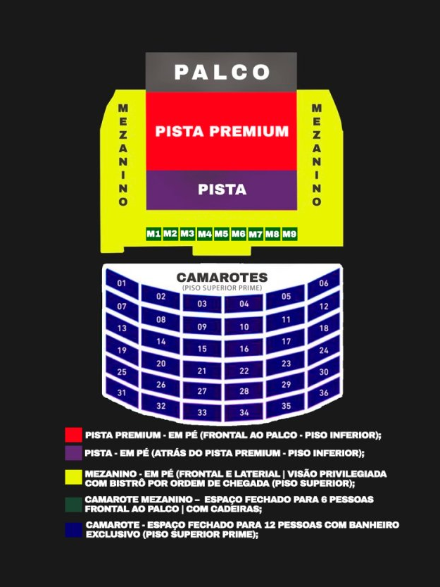 ✅Pista Premium – Setor em Pé ( frontal ao palco - piso inferior)