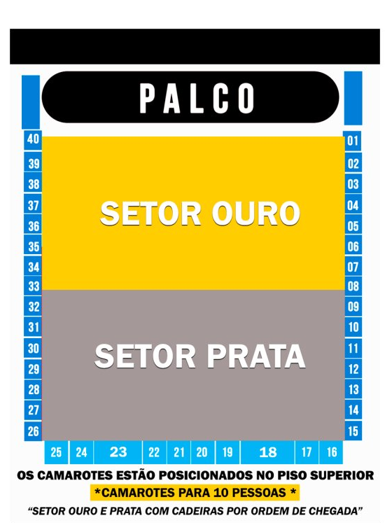 ✅ Prata – Cadeira atrás do Setor Ouro;