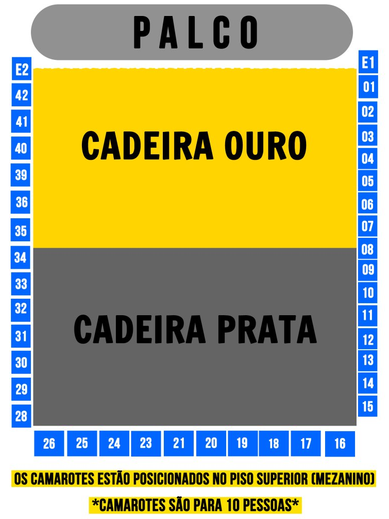 ✅ Ouro – Experiência exclusiva ( mais próxima do palco);