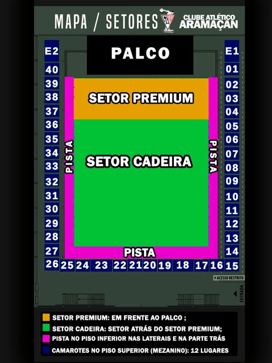 ✅ Premium– Setor feito de cadeiras, mais próximo ao palco;