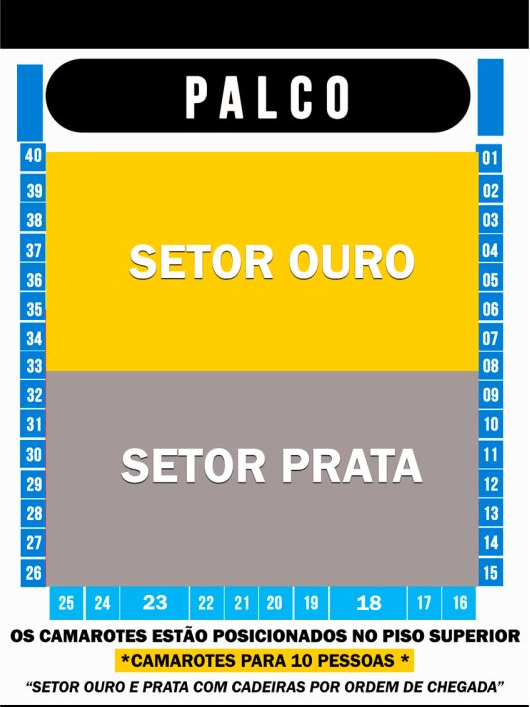 ✅ Prata – Cadeira atrás do Setor Ouro;