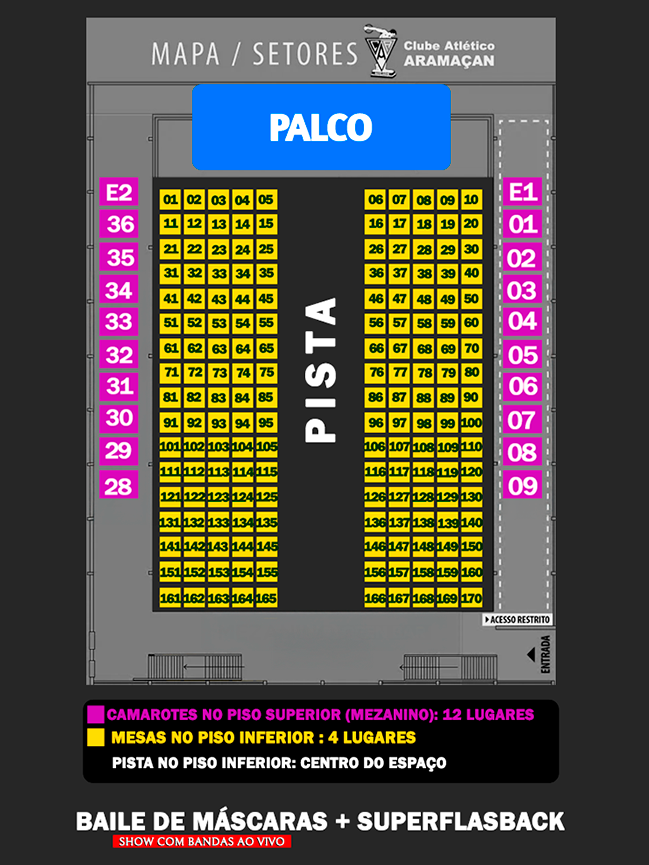 ✅ Camarote – Área reservada com visão especial